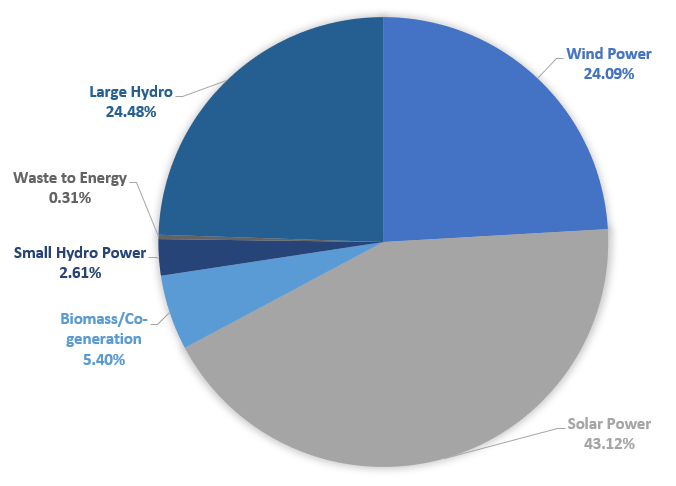 As of Apr 2024, Renewable energy sources, including large hydropower, have a combined installed capacity of 191.67 GW.