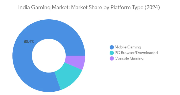 Mobile gaming commands 80% of India’s gaming market in 2024, driven by: